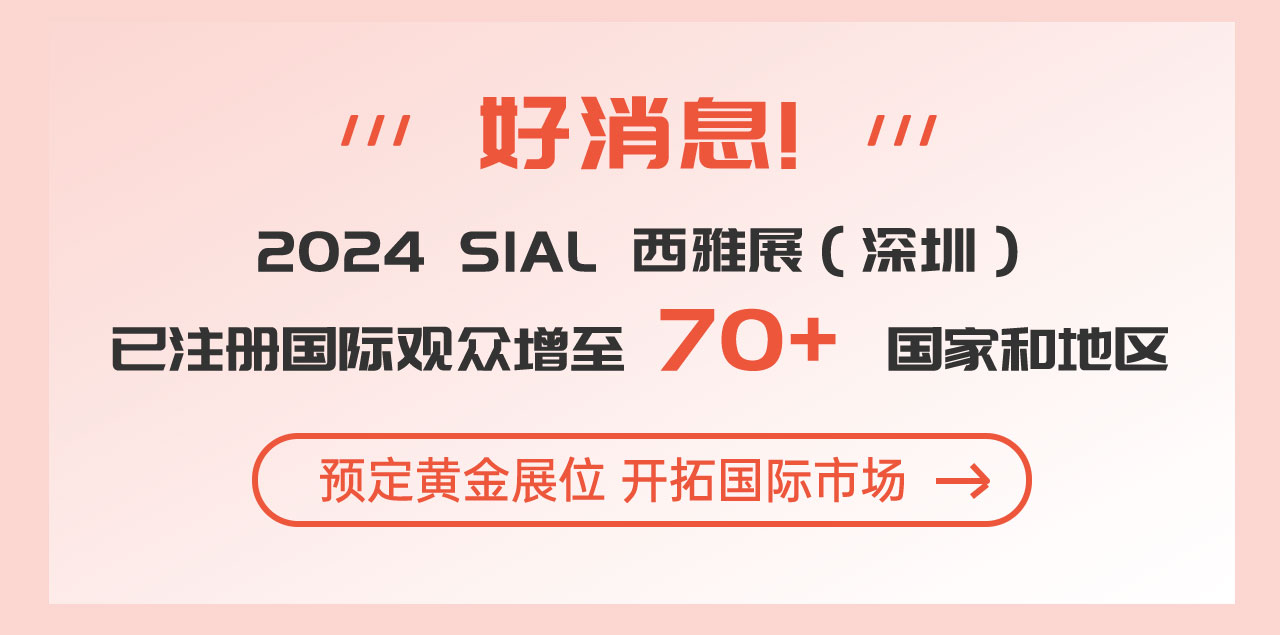 2024 SIAL 西雅展(深圳)将于9月2日至4日在深圳会展中心(福田)盛大开幕,作为覆盖全品类的华南国际食饮交易展和独家聚焦亚太食品饮料市场的国际大展,截至目前,预登记专业观众已来自超过70个国家和地区,SIAL 西雅展(深圳)已获得了全球展商和买家的热烈响应。